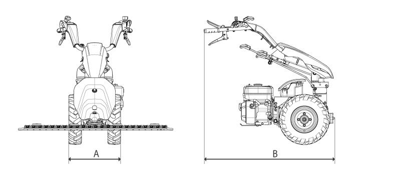 Kosilnica je enostavna za uporabo, kos pa bo tudi košnji visoke trave in uporabi težjih priključkov (mulčerji, rotacijske kosilnice, tračni obračalnik, snežna rolba…). Krmilne ročice se prilagajajo po višini in levo-desno, kar olajša rokovanje s kosilnico.