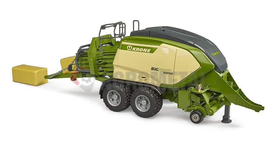 Igrača Bruder balirka KRONE BIG PACK ne le natančno posnema original, ampak vključuje tudi impresivne in inovativne funkcije. Stranske lopute na balirki se lahko odprejo, kar omogoča dostop do podrobne mehanike. Igro dodatno obogatita 2 veliki bali, ki ju je mogoče položiti čez sredinsko loputo. Balirka nato samodejno odpelje bali do izpusta, ko je postopek pobiranja bal aktiviran.