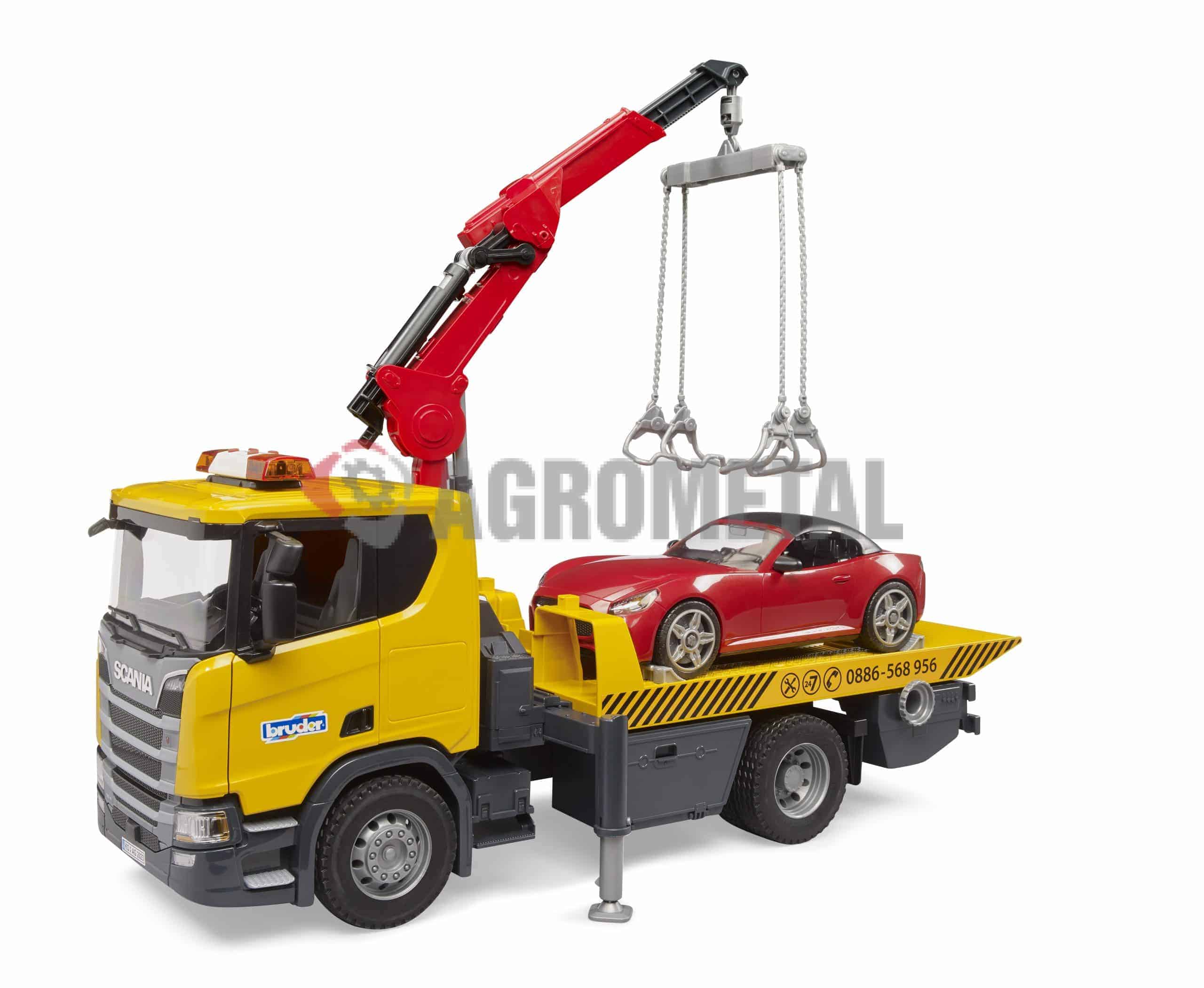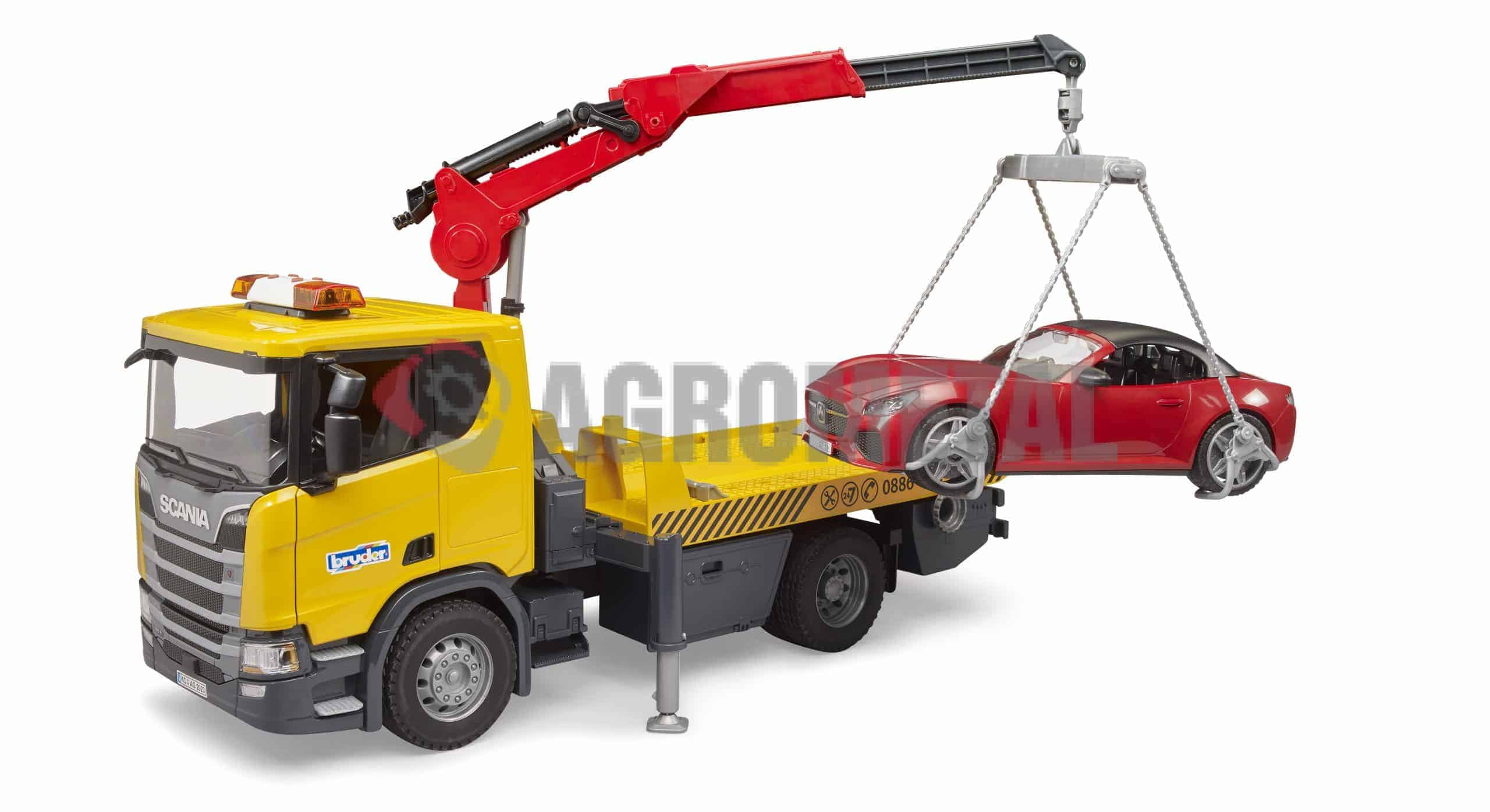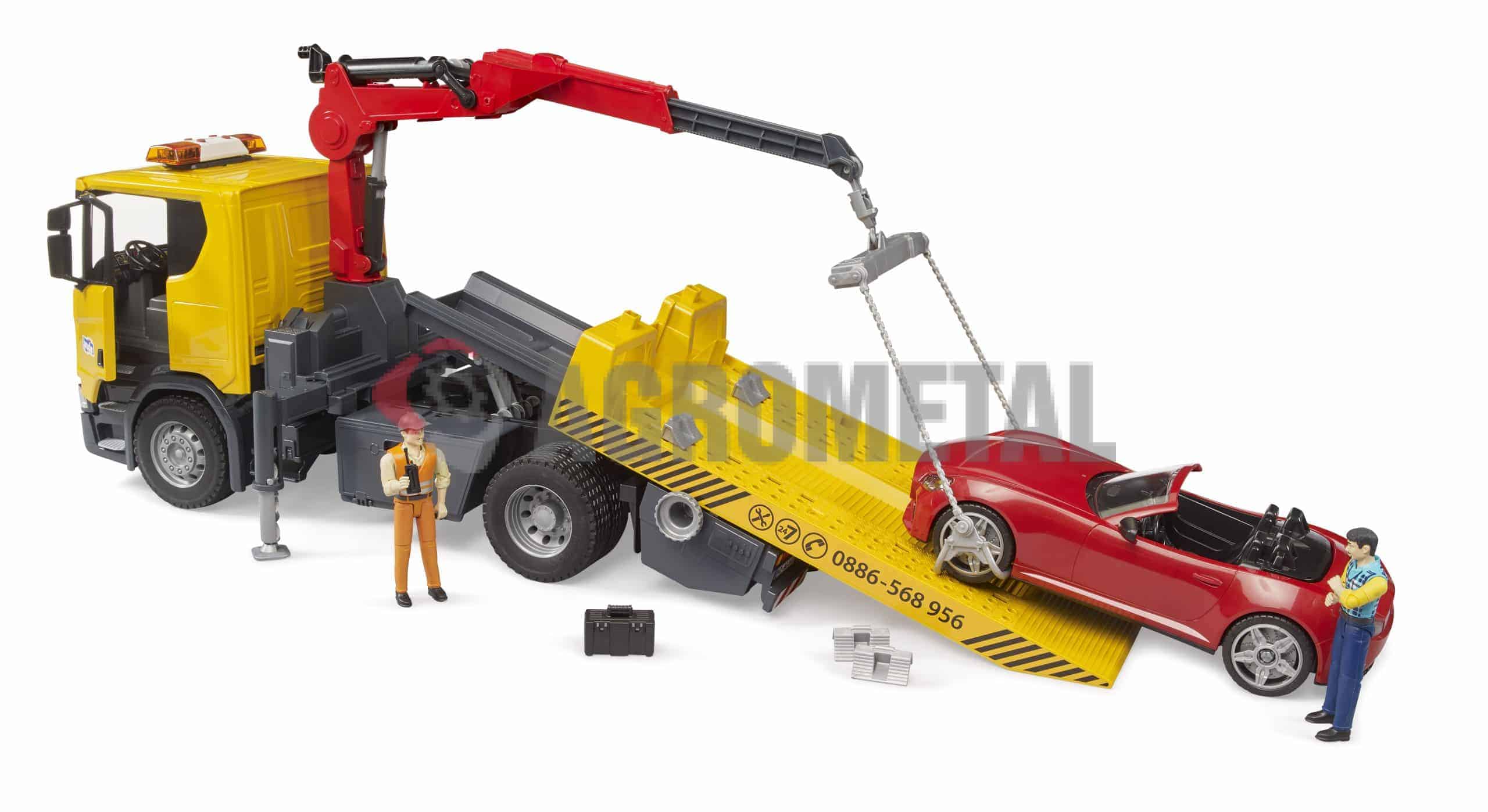 Kolesne zagozde in zložljive opore zagotavljajo varno stabilnost, profilirane pnevmatike pa dopolnjujejo vozilo. Nova, podrobno narejena kabina tovornjaka Scania ima odpiralna vrata in zložljiva ogledala. Modul za svetlobo in zvok je prav tako vnaprej nameščen. Kabina ima snemljivo streho in ponuja prostor za katero koli figuro iz sveta bworld.